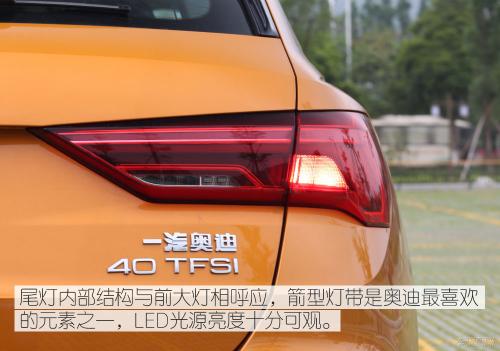 我们此次测试的车型是全新奥迪Q3的中配,为时尚动感型,搭载的是一台2.0L涡轮增压直列四缸发动机,采用两驱布局,尾标为40 TFSI。