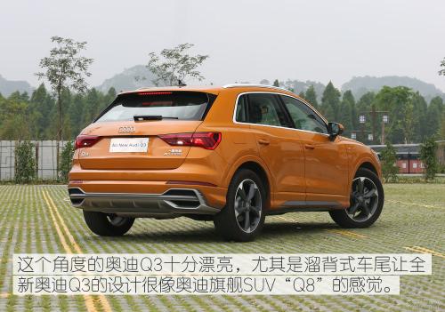 全新奥迪Q3的外观部分与奥迪全新的旗舰级SUV奥迪Q8十分相似,尤其是我们这次的测试车又是十分高贵的鎏金橙色,每次出小区的时候都有很高的回头率,而且回头率多来自年轻消费者,由此可见这套设计十分受年轻人喜爱。