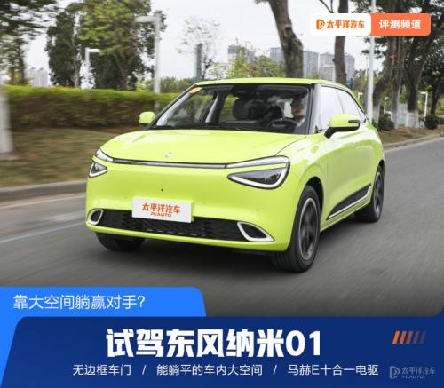 【太平洋汽车评测频道】目前纯电入门小车基本告别“老头乐”形象,同时消费者需要这个级别产品要有大空间、智能化、有高质感。而今天试驾的主角在空间上有越级表现,主打一个车内躺平模式,另外在设计上和配置上拥有几项同级独有的,它就是东风纳米01(询底价|查参配)。东风纳米01静态亮点多多,那么搭载马赫E十合一电驱开起来又如何?