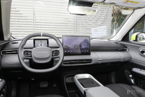 车内走简洁的简洁的设计风格,除了方向盘上的物理按键,在车内几乎看到任何物理按键。其次在质感营造方面,纳米01是下足功夫。首先拿副驾部分举例子,深色皮革材料有大量的菱纹装饰,再配合黑色皮带装饰,使得这个区域看看起来很有女士手提包的味道。