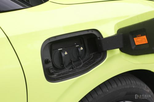 其次车辆充电口位于车头右侧翼子板处,拥有快充和慢充接口。其中快充插口可以在30分钟内把30%的电量充到80%。