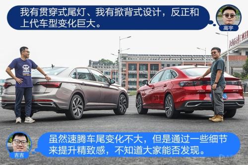 另一边改款后的速腾相比旧款车型在造型上朝着精致感的方向去设计,不过变化的地方集中在细节,整体大框架和旧款车型拉不开距离,即便是遮挡Logo也能轻易辨认出这是台大众车,不像凌渡L那样有耳目一新的感觉,保持那种年轻人居家的定位风格。