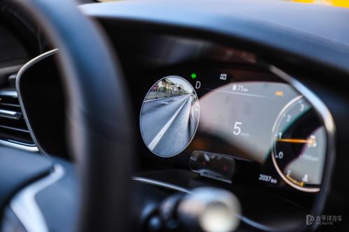 最后,再说一下这台车上我最喜欢的功能,在打转向灯变道的时候,对应侧的仪表盘会变成流媒体后视镜,能够查看车后侧的视野盲区,如果离后车距离过近的话,系统还会通过方向盘震动以及警报提示音来提醒你。