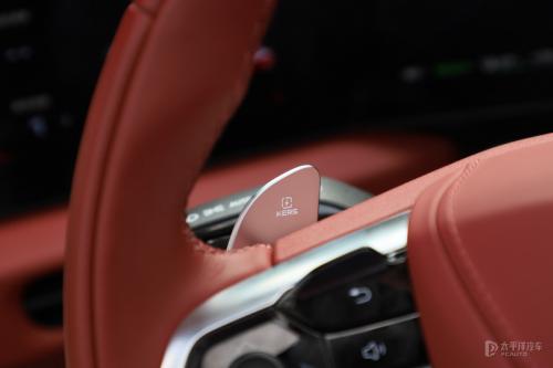 另外,动能回收力度也可以通过方向盘左侧的拨片来进行调节,尽管动能回收无法完全关闭,但在调到最低的情况下,松开油门后没有明显的拖拽感,这一点能够给驾乘人员带来不错的体验。