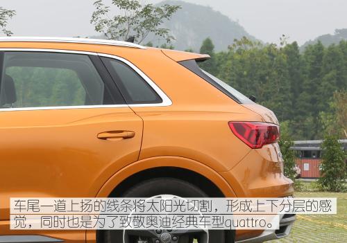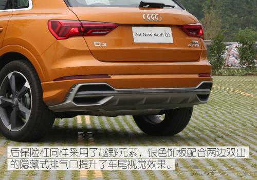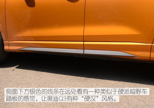 全新奥迪Q3的外观部分与奥迪全新的旗舰级SUV奥迪Q8十分相似,尤其是我们这次的测试车又是十分高贵的鎏金橙色,每次出小区的时候都有很高的回头率,而且回头率多来自年轻消费者,由此可见这套设计十分受年轻人喜爱。
