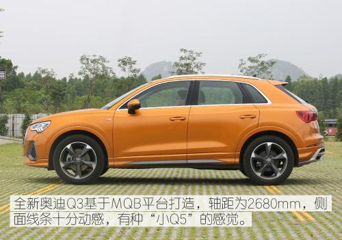 我们此次测试的车型是全新奥迪Q3的中配,为时尚动感型,搭载的是一台2.0L涡轮增压直列四缸发动机,采用两驱布局,尾标为40 TFSI。