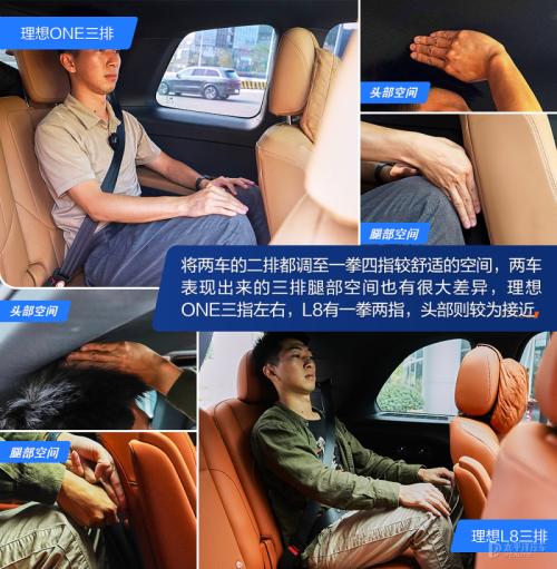 首先从尺寸对比看,789三兄弟都要比理想ONE大一些,无论是长宽高还是尺寸。而理想L8与L7,除了车长车高,其余数据一模一样。同时也不难看出,三兄弟在车内空间方面,应该也会比理想ONE有所提示。既然L8是继任者,我们也将它与理想ONE单独对比一下两者的车内驾乘空间如何。