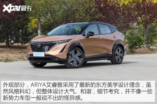 ARIYA艾睿雅的外观造型设计与以往的日产车型大有不同,优雅中带着一丝动感。此外通过时下流行的元素进行点缀,共同展现出科技与现代的一面。ARIYA艾睿雅是在保持东方内敛低调的同时,又加入了品牌自身对于未来感的想象,营造出独特的东方设计美学,使得ARIYA艾睿雅揽获了2022年度红点产品设计奖、iF设计奖等奖项,足以证明其设计的创新感。