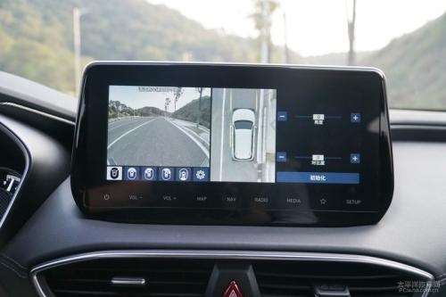 第四代胜达的360°全景影像显示效果非常清晰,还能切换出多种视角以及调整亮度、对比度,即便光线偏暗,它依旧好使。