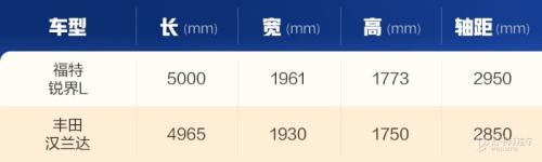 锐界L无论是在视觉上还是实际参数上,都要比汉兰达更大一些,轴距上100mm的优势势必为后排空间带来巨大的优势。