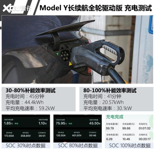 除续航测试外,我们在同样的气温条件下对这台ModelY进行了补能测试。为了保持测试标准的统一,本次依然使用了国网充电桩。而需要指出的是,该车在测试时出现了两次充电桩无法识别与一次充电中断的情况,您在日常使用时仍需多加留意。