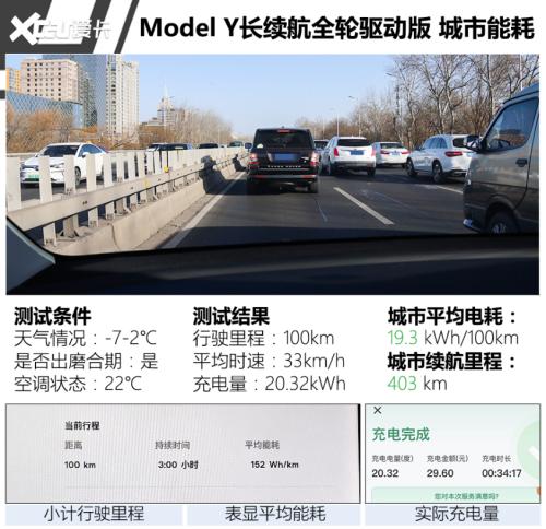 最终本次测试的ModelY长续航全轮驱动版的综合平均能耗定格20.4kWh/100km,实测综合续航里程为384km,相当于官方CLTC续航里程(660km)的58%,可见偏低的温度依然对该车的续航能力造成了一定的影响。