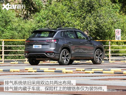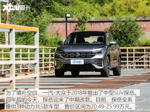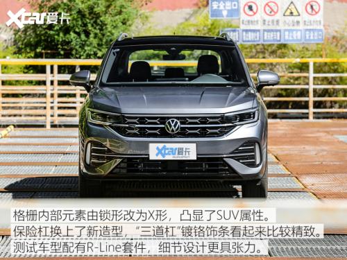 测试车型为2023款探岳380TSI四驱R-Line Pro智慧版(以下简称为“新款探岳”),也就是全系顶配,其官方指导价为25.99万元。测试车采用锡石灰外观涂装以及黑/灰双色内饰,并选装了Side Assist变道辅助系统、harman/kardon高级音响系统。