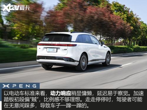 刹车脚感一如往常,带有鲜明的电动车风格。整体来看,初段制动力稍低于预期,刹车信心略有不足。右脚需要踩深些,才能得到预期中的制动效果。当然,比起大众ID.系列、奥迪e-tron或奔驰EQS,小鹏G9的刹车脚感还是不错的。至少,紧急制动时,车子不会让人心里发虚。