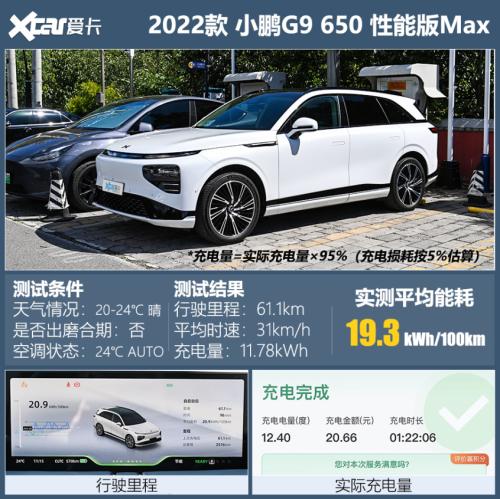 由于试驾车档期紧凑,我们仅测试了城市能耗。在平均车速31km/h且开启空调A/C的条件下,小鹏G9 650性能版Max跑出了19.3kWh/100km的平均能耗。根据98kWh的电池容量推算,该车的城市续航里程约为508km,相当于官方标称值(CLTC工况)的78%。