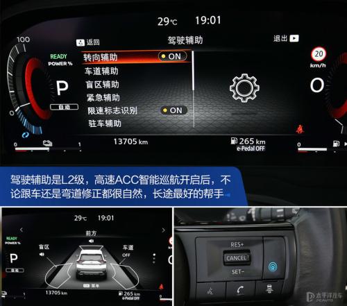 就长途驾驶来说最长用的配置就是驾驶辅助功能,奇骏e-power配备的级别虽然是最常见的L2级,但是车道居中保持、盲区监控以及自适应ACC在实景路况下应用还是很不错的。跟车汇车时制动力很轻不会让人紧张,加速又很及时果断,尤其是在能见度较低的夜晚安全性的保障是要比人更高效的。此外360度倒车可视非常好用,在狭小的路上掉头图像和实际几乎没有误差,关键是图像分辨率比“两田”强太多了,日系里倒车可视清晰度这块丰田排名倒数第一应该没有什么意义。