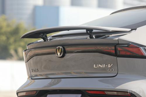 思域锐·混动拥有小尾翼,只不过对比长安UNI-V智电iDD的电动大尾翼就显得失色不少。两边大面积C型尾灯有点向上拔高自身定位的味道。