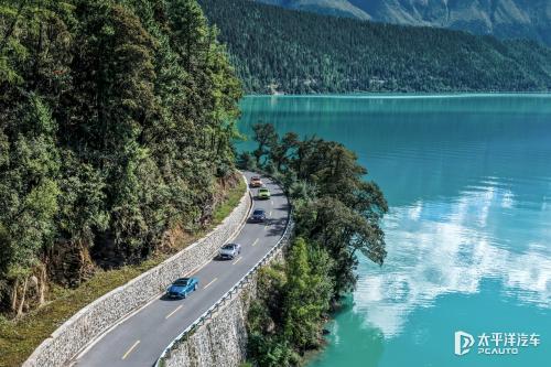 驶抵“东方瑞士”巴松措,飞驰PHEV与湖心岛相映成画。纯电模式可行驶76公里,安静零排放的运行特性,与这片圣洁之地的宁静氛围浑然天成。