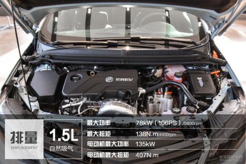 动力系统回顾 别克VELITE 5的搭载了一台1.5L自然吸气发动机,两组12级交流永磁同步电机,变速箱使用的是通用专利EVT电控无级变速箱,工程师对此的定义是广义增程式混动车。这套动力系统的参数非常出彩,最大综合功率110kW,最大扭矩能达到398Nm,这扭矩数据甚至超过宝马全新的B48 2.0T发动机。