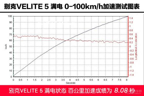 满电状态性能测试 全油门时的动力输出宛如大排量自吸汽油发动机给人的感觉,线性而有底气,不过在加速的后程难免还是有些衰减,最终8.08秒的加速成绩让人满意。