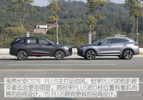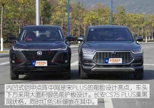 论设计,比亚迪在这些年来一直是它最大卖点。作为品牌新人的比亚迪宋PLUS以Dragon Face 3.0家族设计为基础,接着有各路著名设计师参与研发,包含了比亚迪全球造型设计总监艾格、比亚迪全球外饰设计总监洛佩兹、比亚迪全球内饰设计总监米开勒,宽体式设计和内凹式铠甲中网前脸是它最突出的亮点。2021款长安CS75 PLUS外观上没有太大的变化,基于“御岳”概念车打造的它拥有一副运动外表,熏黑式网状格栅是整车的设计重心,另外2021款车型加入原子灰车漆。