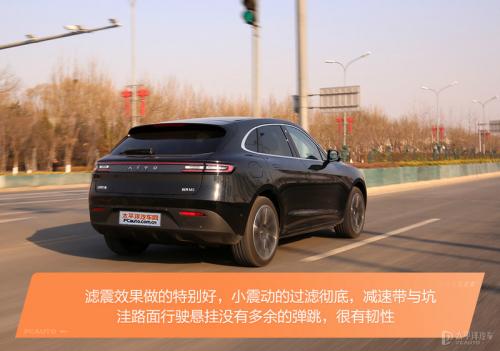 这台车开起来还是很舒服的,轻柔的转向、提速积极且平顺,开着也不累,全铝底盘设计让它的重量更轻,结合更高的动力表现给人的感觉是很灵活的。滤震效果做的特别好,小震动的过滤彻底,减速带与坑洼路面行驶悬挂没有多余的弹跳,很有韧性,毕竟在底盘悬挂方面花了不少成本,拥有一个较高级的行驶质感还是理所应当的。