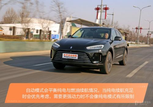 自动模式就很好理解了,它会平衡现在的纯电与燃油续航情况,当纯电续航充足时会优先考虑,在这个模式下车辆的总续航里程会让人非常踏实,当你需要更强动力的时候也不会像在纯电模式下有所限制,就当成是一个傻瓜模式来用就好。