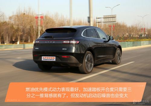 燃油优先模式动力表现最好,从纯电切换到燃油优先需要适应一下,提速感和动力的到来要比预期快不少,加速踏板开合度只需要三分之一推背感就有了,积极的动力响应确实让人信心倍增,重要的是你不再需要关注纯电续航的多少这是最舒服的。当然,在燃油优先情况下发动机启动后噪音也会变大。