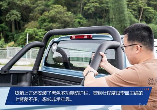 金刚炮拥有一副大气时尚的外观设计,将力量美学与精致动感完美兼容。李喆主编对这样的造型和车身颜色大有好感,在他看来,金刚炮完全颠覆了过去那些传统商用皮卡的“糙汉”形象,看上去更像一个活力四射的“创业小伙”。他还进一步表示,对于如今的商用皮卡来说,实用性固然重要,但颜值也越来越被用户所重视,因为他们的实际需求和使用场景已经变得多元化。