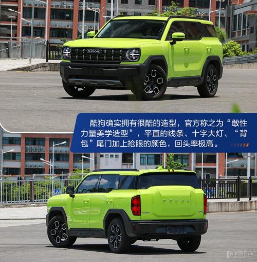 除了4D燃音座舱很酷之外,酷狗在其他方面还有什么亮点?首先必然是其极具个性的外形设计,官方称之为“敢性力量美学造型”,采用了星光十字大灯、时空交响格栅、日出天际腰线、追风逐影轮毂、远征背包尾门等设计,光看这些名词就觉得很酷,而整体塑造出来的造型十分硬朗,又有些复古,总之就是一款走在路上回头率极高的车型。