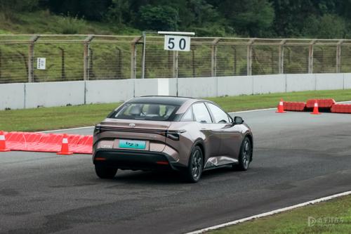 bZ3的电机参数算是主流水平,但是它的爆发力还是有了,像跑在珠海赛道的大直线,加速踏板全踩下去,你不去观察液晶仪表盘的速度情况,还真不会感觉车速已经去到130km/h左右。虽然加速那种强烈的推背感明显没有那些3秒、4秒的性能电车来得明显,但对比那些2.0T同级别轿车,bZ3的加速能力足以秒杀它们。