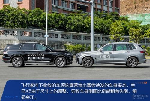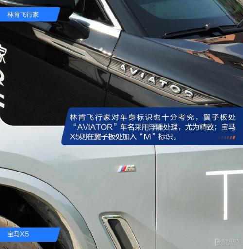 林肯飞行家的腰线、车顶轮廓线在接近车尾是向下收敛,而侧裙的线条向后盛起,形成“三线汇聚”。宝马X5腰线肌肉感十足,后轮眉采用外抛设计,营造出宽体的效果。尺寸方面,林肯飞行家面对加长后的宝马X5仍有一定优势——长、宽数据比宝马X5更大。