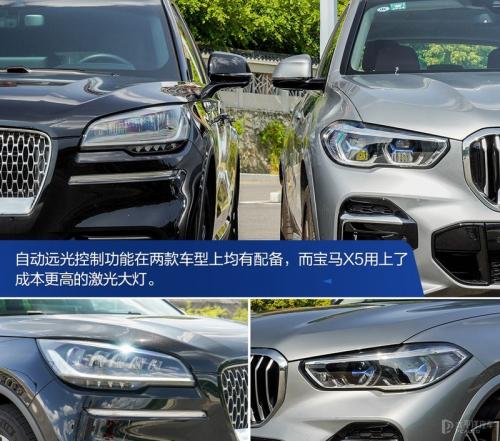林肯飞行家尊雅版车型搭载了自适应LED前大灯,整合了自动远光控制、自动水平调节以及近光灯自动开启功能。宝马X5 xDrive30Li尊享型M运动套装搭载了智能激光大灯,提供远光自动控制功能。
