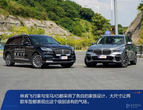 无论是宝马X5(询底价|查参配)还是林肯飞行家,两车在外观设计上都有着明显的家族特征,国产后的宝马X5依旧延续了进口车型的外观设计语言。流畅的线条让林肯飞行家在观感上更为优雅,而宝马X5则十分粗犷、硬朗。