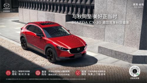 与此同时,长安马自达针对备受广大女性用户喜爱的都市跑旅SUV MAZDA CX-30(指定车型)同样推出了诚意十足的购车政策。包括六项主动安全配置升级:MRCC全速域自适应巡航系统、CTS巡航模式智能行车辅助系统、HBC自适应远光灯控制系统等;以及分期购车可享灵活车贷至高36期0利率,置换至高5,500元补贴、3年6桶全合成机油,以及免费上门取送车服务等。
