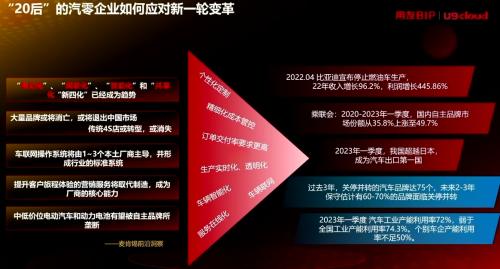(以上内容来用友网络科技股份有限公司U9cloud方案咨询中心总监杨盛于2023年9月18日在2023第二届汽车数字化转型大会上发表的《高效协同领航未来,汽车产业链高效增长的数智力量》主题演讲。)