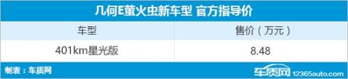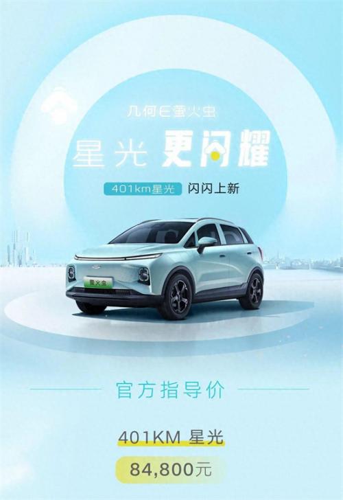 今日,我们从吉利几何汽车官方获悉,旗下几何E萤火虫星光版车型正式上市,其售价为8.48万元。此外,官方还推出了5大用户权益,包括遇光金融礼、遇光质保礼、遇光焕新礼、遇光充电礼和遇光流量礼。