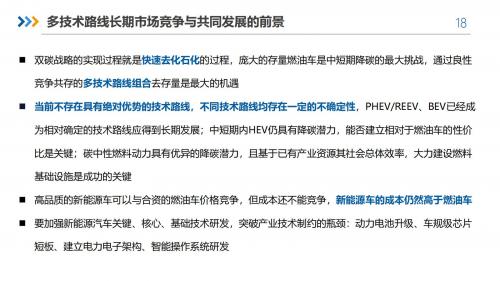 车用动力系统的技术路线必须多元化,以实现"双碳"目标。