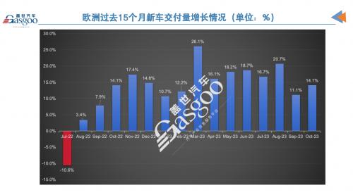 11月21日,欧洲汽车制造商协会(后简称ACEA)发布的数据显示,10月份,欧洲新乘用车交付量同比增长14%,达到了104万辆,其中电动汽车的销量占总交付量的约15%。当前,汽车制造商仍在努力处理订单积压问题。