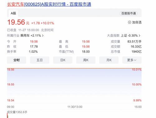 27日开盘,长安汽车股价继续涨停,以10.01%的涨幅收盘。与华为有关的整个汽车板块涨幅超过2%。可见,本次双方牵手的能量。