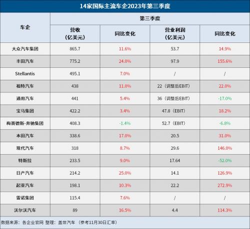 不过,得益于销量增长、良好的定价以及有效的成本管理等有利因素,大部分国际车企第三季度实现了增长。