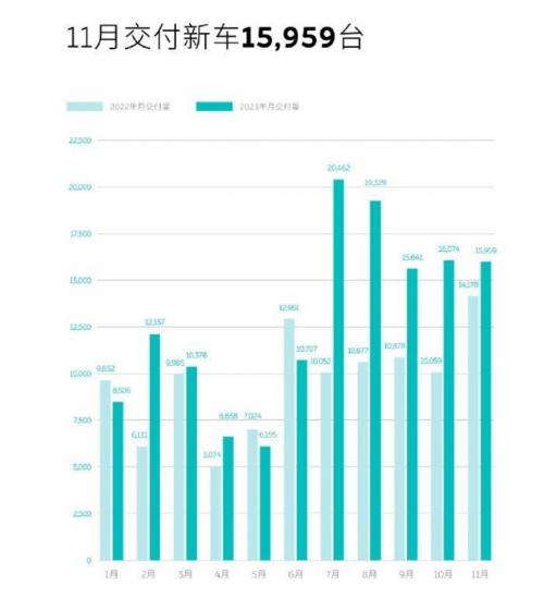 在今年经历了起起伏伏的小鹏汽车,近两个月的表现却是尤为喜人。在刚刚过去的11月里,小鹏汽车交付量稳住了2万台大关,单月新车交付量为20041台,小幅增长0.2%创下了自己新的单月交付纪录。今年1-11月,小鹏汽车累计交付121,486辆,已超2022年全年销量120757台,但与其20万辆的年度销量目标仍存在一定差距,预计其全年销量可能会接近15万台。