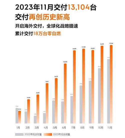 在今年11月,哪吒汽车共交付12506辆,相比10月交付成绩有轻微的提升,今年1-11月累计交付122361辆。目前哪吒X取得了20000多台的订单量,同时哪吒在海外市场也是动作不断,这些都带动了哪吒汽车的销量增长。