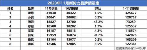 整个11月里,零跑、深蓝、极氪、哪吒分别排名4、5、7、8位,这四家车企的特点就是一个“稳”字,销量稳中微增,在刚刚经历了“金九银十”之后,11月的销量表现也算不错。