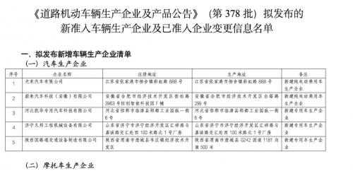 汽车信息网12月12日讯近日,工信部发布了关于《道路机动车辆生产企业及产品公告》(第378批)拟发布内容的公示,披露了新增车辆生产企业清单。清单中,除了有几天前就开始讨论的蔚来外,还出现了一个意料之外的车企。