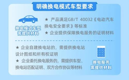 不过这次的公告明确表明政策开始支持换电车型的购置税减免,同时公告给出了明确的技术要求。除了换电模式车型需提供满足GB/T 40032《电动汽车换电安全要求》等标准要求的第三方检测报告以及生产企业保障换电服务的证明材料外,换电车企如果是自建换电站的,还需提供换电站设计图纸和所有权证明,如果不是自建换电站而是采取合作换电的车企,还需要额外提供合作协议等。