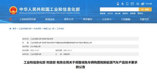 汽车信息网12月13日讯一直以来新能源汽车的发展都离不开汽车购置税减免政策的扶持。就在12月11日,工业和信息化部、财政部、税务总局联合发布《关于调整减免车辆购置税新能源汽车产品技术要求的公告》,此次发布的公告明确了2024年后新能源汽车减免车辆购置税政策适用的技术条件和执行要求。