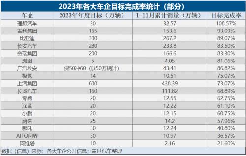 此外,还有长安汽车、奇瑞集团以及岚图汽车,目标完成率达到80%以上。岚图汽车年度销量目标为5万辆,12月仍有万辆的销量任务需达成,压力也不可谓不小。