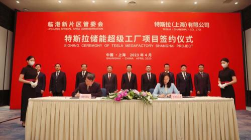 今年4月9日,上海临港新片区党工委副书记吴晓华与特斯拉公司副总裁陶琳代表双方签约,宣布特斯拉储能超级工厂项目落户临港新片区。彼时,特斯拉表示,该工厂计划于今年第三季度开始动工,并将于2024年第二季度投产,储能规模近40GWh。