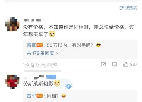 此外,他还表示,“当然从这个也看得出来大家都很关心小米汽车的售价,别急,有购车意愿的再等等。我一定会准时爆料的!” 。